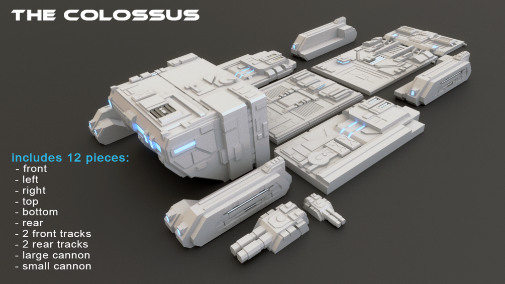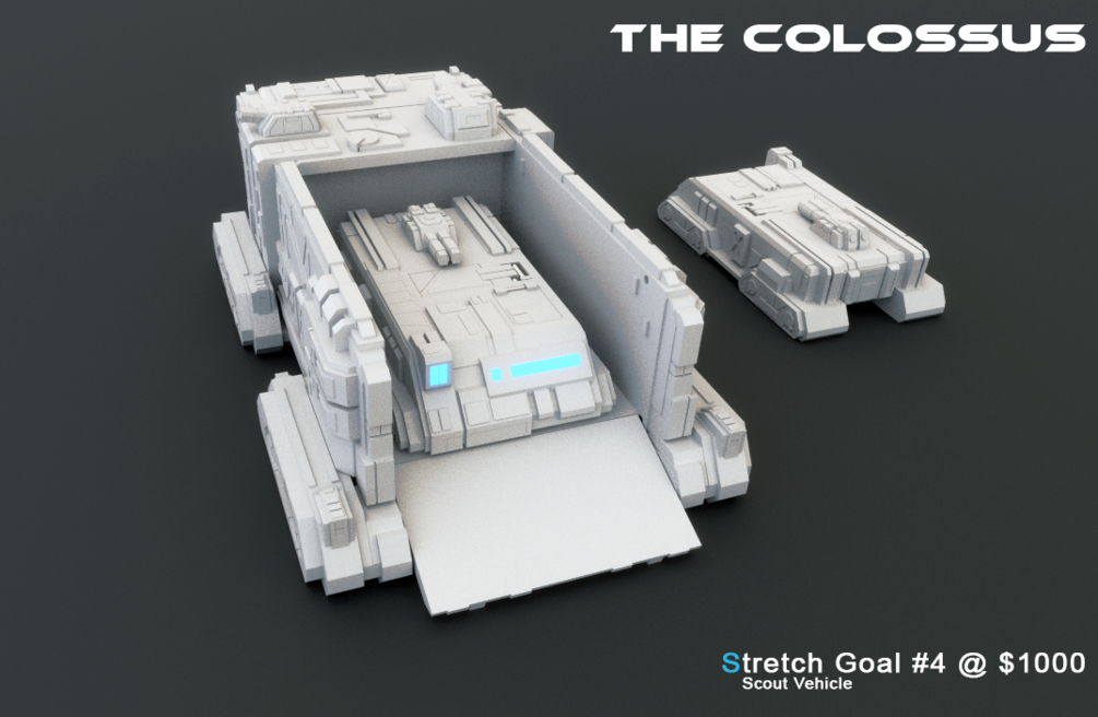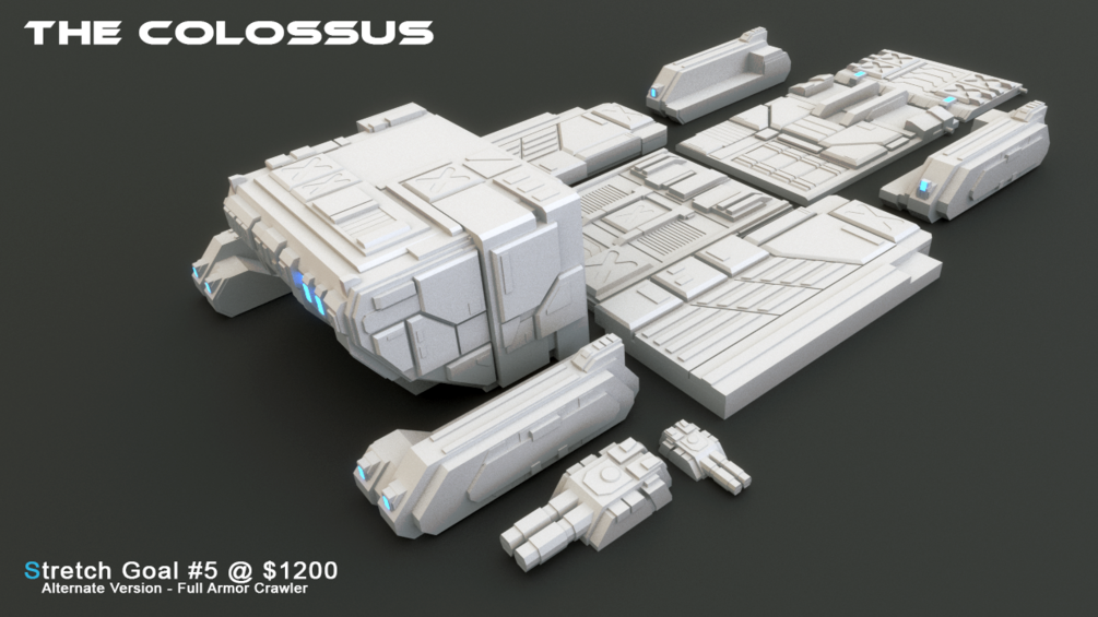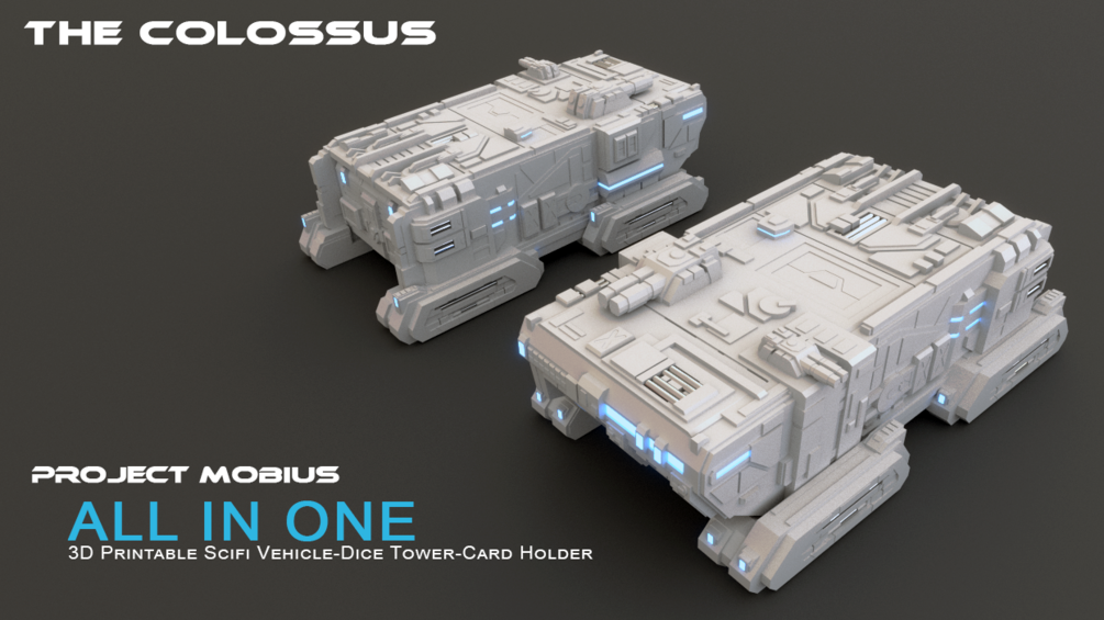I have never done anything like this before as I have to design this model in pieces and be able to put it together like a model kit. The top is designed to be able to flip open to act as the tower and the rear of the crawler can flip down as well for you to store your game cards inside. The crawler itself is designed for 6-10 mm scale games. It is quite big because I have to make sure the interior has enough space to store cards and be a dice tower. Of course, you can scale this up by about 280% for 28 mm games if you choose to do so. With this campaign I can also gauge if there is actually a interest for this kind of all-in-one 3d printable model.