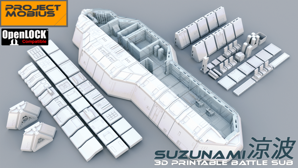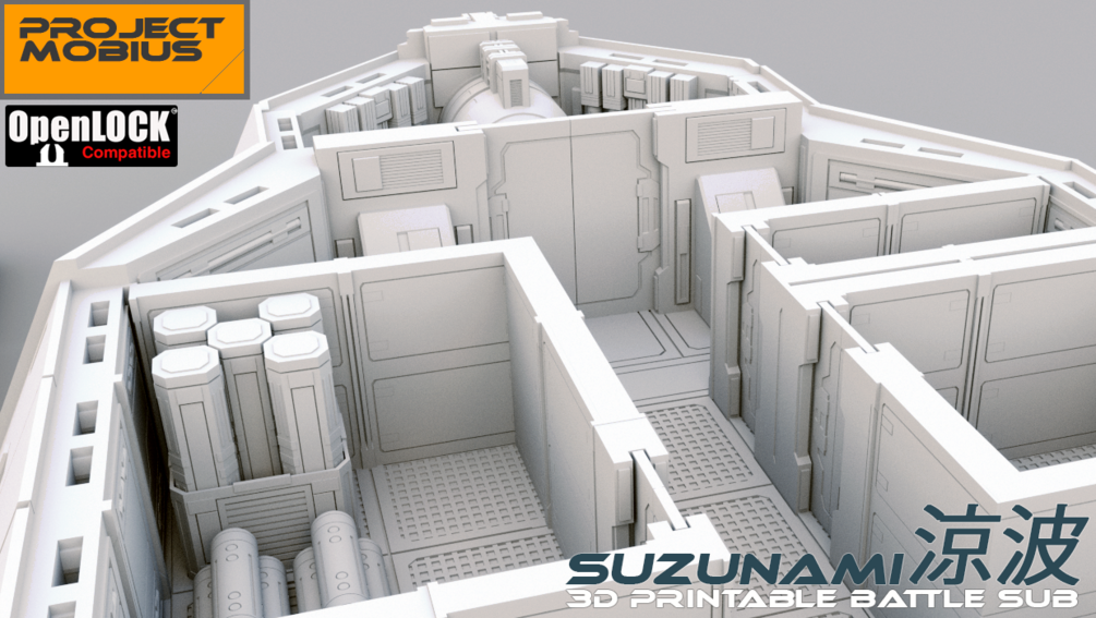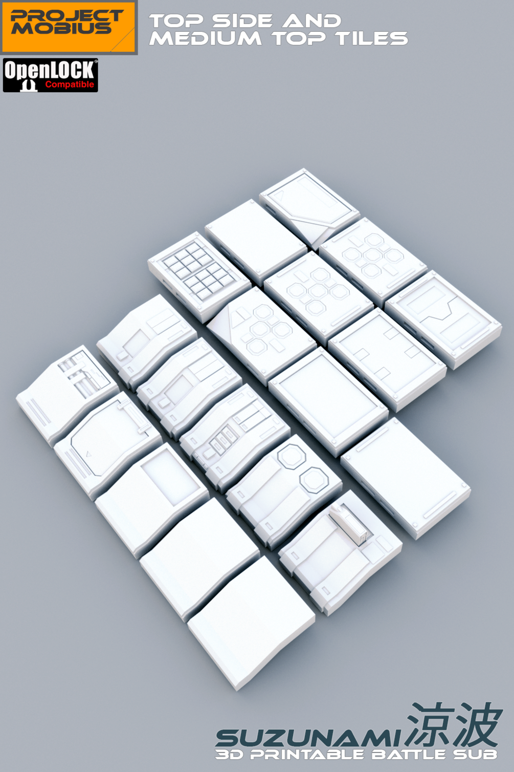 I know this isn't the first of its kind but its something totally new to me. I've done spaceships and terrains in the past I thought why not combine both! Designing the initial "frame" of the submarine took a long time. First I had to come up with the overall shape. Followed by separating the pieces into smaller tiles before integrating with the OpenLOCK system. Once that was done I was able to finally focus more on the actual design of the submarine both inside and out.
